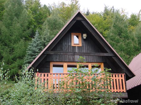 BESKYDY: bungalovy v centru Beskyd s krásným výhlem na nejvyšší vrcholy - Smrk a Lysou horu, 80 m od objektu A6858, 6 km od Frýdlantu n. Ostravicí. V objektu v přízemí předsíňka, koupelna se sprchovým koutem a WC, obýbací místnost (možnost 2 přistýlek) s balkónem, menší lednice, telefon, internet. V podkroví 2/2 ložnice. Bungalov není přizpůsoben pro vaření.