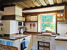 V objektu v patře: 3x dvoulůžkováná ložnice, 1x 1x dvoulůžkováná průchozí ložnice (rozkládací dvoulůžko), prosklená veranda s BVTV, stolkem, křesly, lavicemi a výhledem do zahrady, koupelna (sprchový kout, umyvadlo, WC). Topení: krb - tuhá paliva, elektrické.