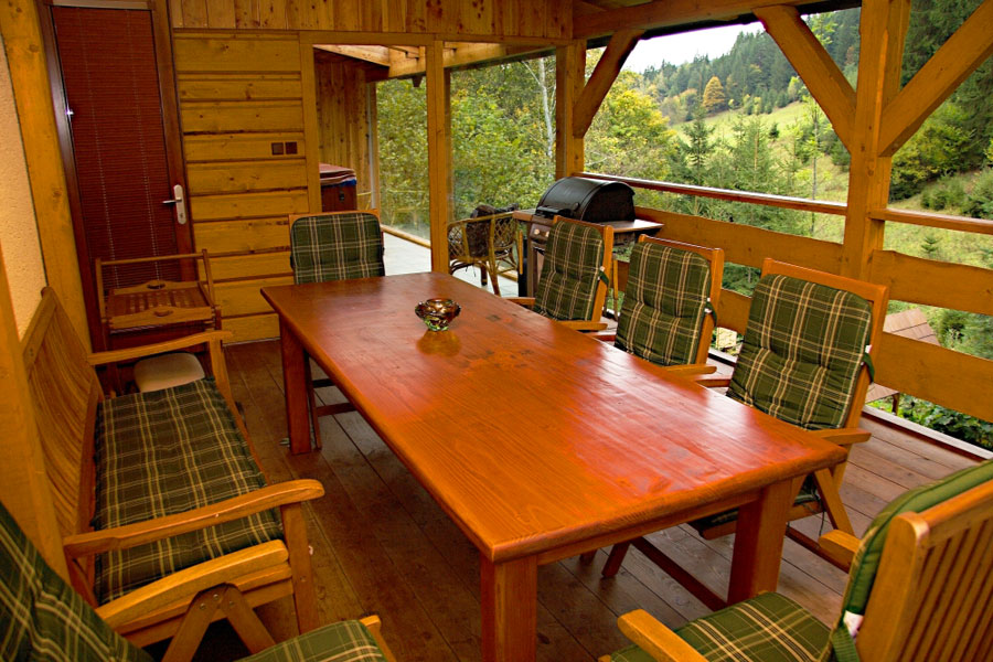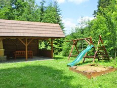 U objektu: oplocená zahrada, zastřešená terasa s posezením a grilem, ohniště s posezením, venkovní posezení s krbem, pískoviště, skluzavka, houpačky, zahradní nábytek, garáž (možnost parkování), parkování.
