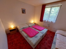 V chatě: obytná kuchyně (plotýnkový vařič, lednička s mrazícím boxem, rychlovarná konvice, jídelní kout, TV), 1/3 ložnice (dvoulůžko, samostatné lůžko), koupelna (sprchový kout, umyvadlo, WC). Povlečení vlastní.