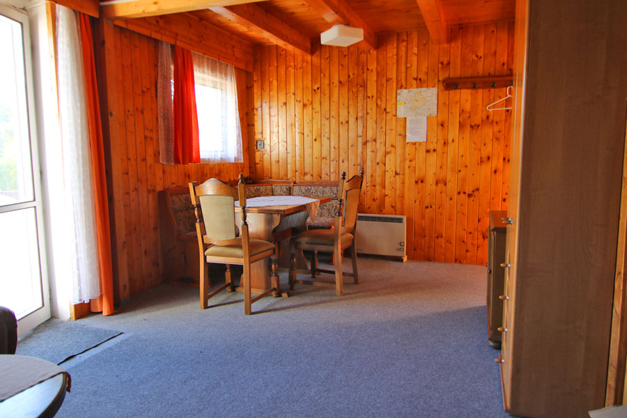 V objektu v přízemí: společenská místnost (jídelní stul, sedací souprava, krbová kamna, TV + SAT, vstup na terasu), kuchyňský kout (lednice s mrazákem, sporák, myčka nádobí, mikrovlnná trouba, varná konvice, kávovar), koupelna (umyvadlo, sprcha), samostatné WC. 1x dvoulůžková ložnice.