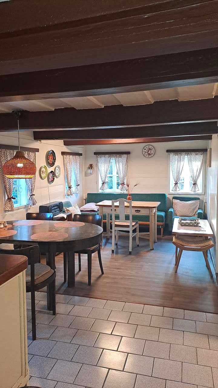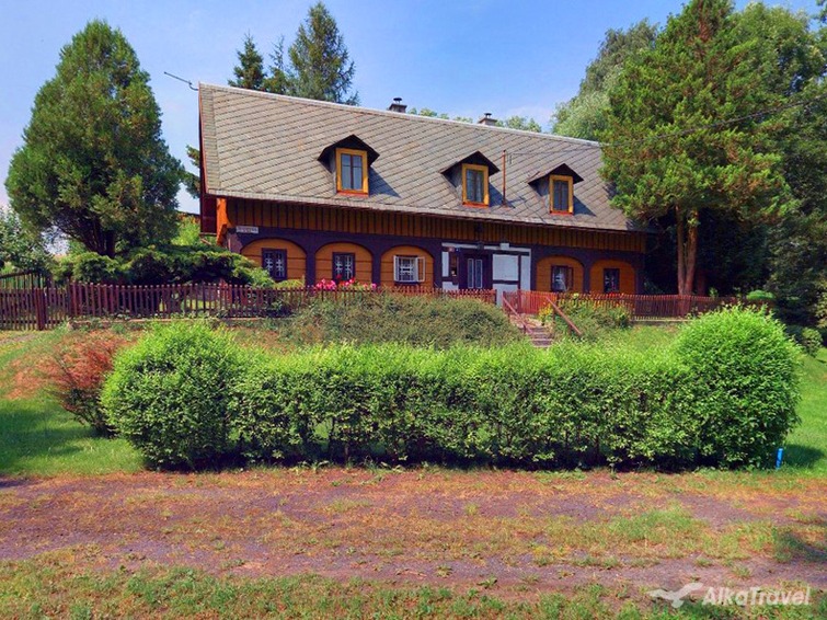 V objektu v přízemí: chodba (lednice), společenská místnost (TV, pohovka, 2x křeslo, 2x stůl, židle) s kuchyňským koutem (sporák, myčka, mikrovlnná trouba, varná konvice, krb), třílůžková ložnice (3x samostatné lůžko), jednolůžková ložnice, koupelna (vana, umyvadlo, pračka, WC), samostatné WC, schody do patra. V objektu v patře: chodba s posezením, čtyřlůžková ložnice (2x dvoulůžko, TV, klimatizace). K dispozici: dětská postýlka. Topení: tuhá paliva - kamna, domácí zvíře: ANO (100 Kč/den).