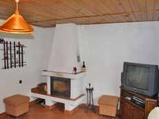 V objektu v přízemí: vstupní chodba, obývací místnost s krbem (sedací souprava, konferenční stolek, BVTV+SAT, výstup do patra, kuchyně s jídelním koutem (kuchyňská linka, elektrický sporák se sklokeramickou deskou, lednička, mikrovlnná trouba, varná konvice, jídelní stůl s lavicí a židlemi, dětský stolek a dvě židličky), koupelna (sprchový kout, umyvadlo, WC).