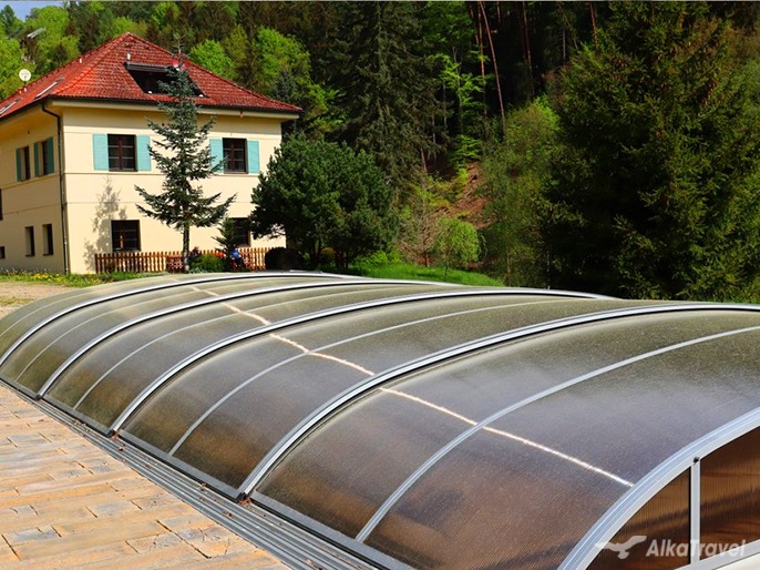 U objektu: samota u lesa (k domu vede jen místní komunikace), venkovní zapuštěný a krytý bazén (8x4 m), grill, zahradní nábytek, slunečníky, lehátka, houpačky, parkování u objektu. Domácí zvíře na dotaz - za poplatek.
