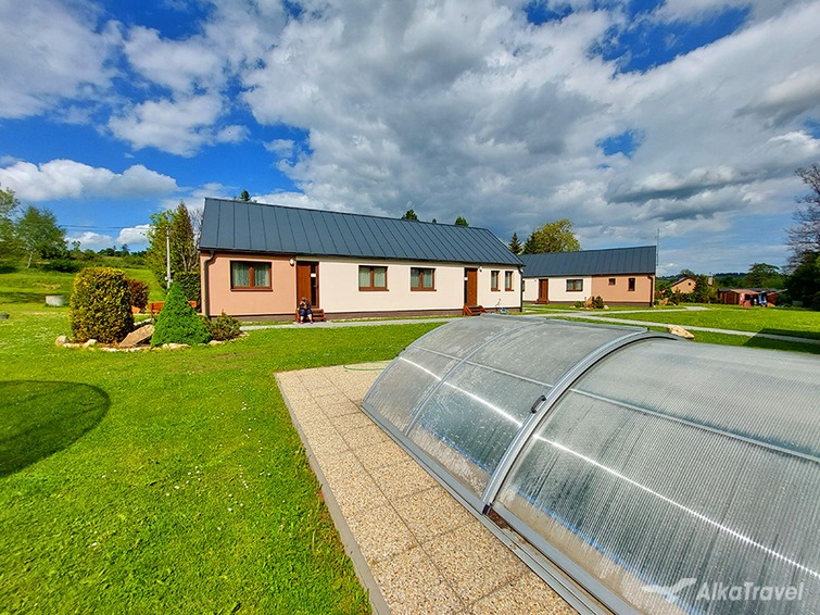 JESENÍKY: ubytování v rekreačním apartmánu s KRYTÝM BAZÉNEM, TRAMPOLÍNOU i ohništěm, 1 km od Nové Vsi a 6 km od Malé Morávky.