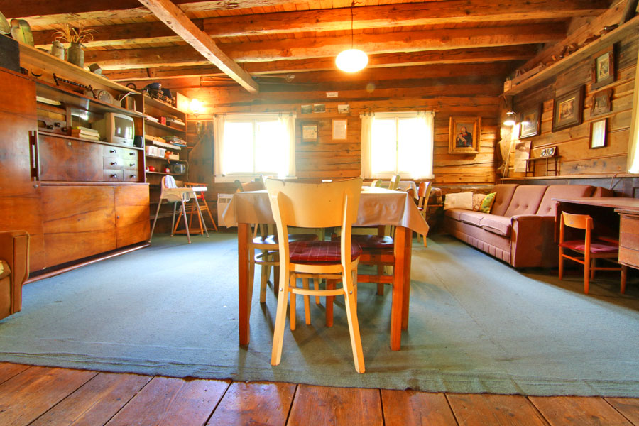V objektu v přízemí: obývací místnost (TV, internet, kachlová pec, krb, křeslo, kulečník, 3x stůl a židle, 1x dvojlůžko oddělené nábytkem) s kuchyňským koutem (el. sporák, lednice, mikrovlnná trouba, varná konvice, kávovar, myčka), 1/2 ložnice (1x dvoulůžko), koupelna (vana, umyvadlo, WC), samostatné WC, sauna.