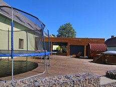 U objektu: uzavřený dvůr, oplocená zahrada, parkování v uzavřeném dvoře, plynový gril, vířivka, sauna, ohniště, trampolína, stolní tenis. Krytý, zapuštěný a vyhřívaný bazén 12 x 5 x 1,6 m, slaná voda (bazén se standardně vyhřívá červen až září, v dalším období NE), dětské hřiště.
