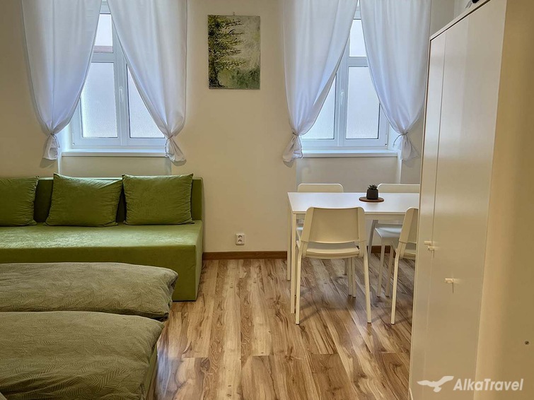 V objektu: vlastní vchod, obývací pokoj (TV + SAT, stůl a židle pro 4 osoby, dvoulůžko, rozkládací pohovka pro 2 osoby), kuchyňský kout (indukční varná deska, lednice, mikrovlnná trouba, myčka, varná konvice, kávovar Dolce Gusto), koupelna (sprchový kout, umyvadlo, WC, pračka, sušička). V celém apartmánu k dispozici WIFI. Topení: podlahové vytápění. Domácí zvíře: ANO (po dohodě).