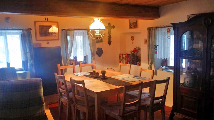 V objektu v přízemí: zastřešená terasa, obývací místnost (BVTV + SAT, sedací souprava, křesla, WIFI, krb) s jídelním koutem (stůl, židle), kuchyň (lednice, indukční vařič, samostatná trouba, varná konvice, mikrovlnná trouba, pračka), pokoj/pracovna (rozkládací pohovka - 1x přistýlka), koupelna (vana, umyvadlo), samostatné WC, místnost pro kola/lyžárna, schody do patra.