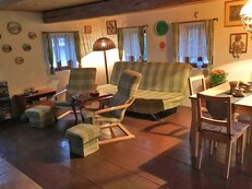 V patře: 2x 1/3 ložnice (vždy dvoulůžko a samostatné lůžko), samostatné WC, možnost dětské postýlky. Topení: elektrické, tuhá paliva - krb.