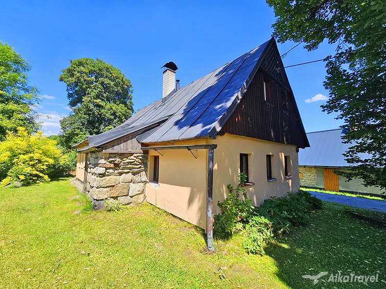 JIZERSKÉ HORY: zrekonstruovaná patrová chalupa v částečně oplocené zahradě s WIFI, zastřešenou TERASOU a grilem, v horské rekreační oblasti s výhledem do okolí, v blízkosti lyžařských středisek, 1,5 km od centra Maršovic, 19 km od Liberce.