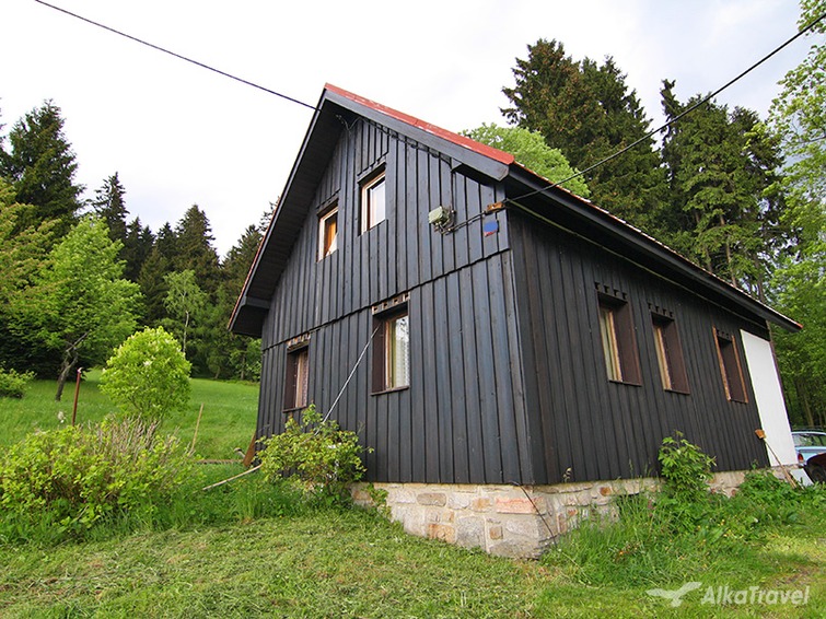 JIZERSKÉ HORY: patrová horská chata s KRBOVÝMI KAMNY na rozlehlé horské louce u LESA, u lyžařského areálu s VÝHLEDEM do okolí, na pomezí Jizerských hor a Krkonoš, 4 km za Kořenovem, 11 km od Rokytnice nad Jizerou, 10 km od Tanvaldu a 120 km od Prahy.