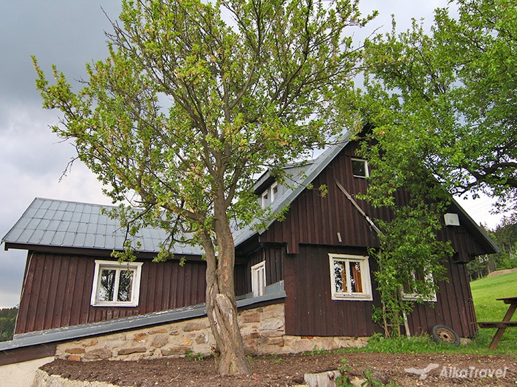 JIZERSKÉ HORY: velká patrová horská chalupa se dvěma samostatnými, uvnitř propojenými obytnými částmi s možností pronájmu celého objektu až pro 23 osob, nebo jen jedné poloviny pro 13 nebo 10 osob, s KRBOVÝMI KAMNY na rozlehlé horské louce blízko LESA, u lyžařského areálu se sedačkovou lanovkou, dalekým VÝHLEDEM až na Ještěd, nebo na Máchovo jezero s hradem Bezděz, na pomezí Jizerských hor a Krkonoš, 4 km za Kořenovem, 11 km od Rokytnice nad Jizerou, 10 km od Tanvaldu a 120 km od Prahy.