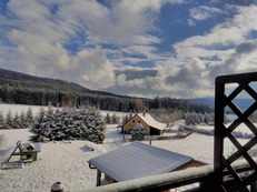 NOVOHRADSKÉ HORY: samostatná vrchní část rekreační chalupy s výhledem, dětským venkovním hřištěm a WiFi internetem na klidném místě uprostřed Novohradských hor nedaleko Horní Stropnice a 3 km od centra Černého Údolí.