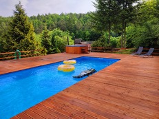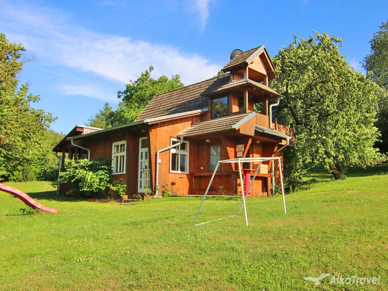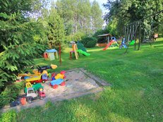 U objektu krytá terasa s posezením, venkovní krb s posezením, společně obrovský pozemek a vybavení s travnatými loukami a lesním porostem, rybník s možností rybaření, hřiště na Paintball, fotbalové hřiště s brankami, hřiště na badminton a volejbal, basketbalový koš, rozlehlá zahrada se zapuštěným bazénem (délka 6,5m, šířka 3,5m, hloubka 1,5m) a vířivkou, velká zastřešená pergola s krbem, grilem a posezením, ohniště, stolní fotbálek, ruské kuželky, stolní tenis, trampolína, dětský koutek s prolézačkami, pískovištěm, kolotočem i houpačkou, malá hospůdka s posezením u krbu, točené pivo, nealko i alko nápoje, šipky, šachy, 400 m v údolí řeka Blanice.