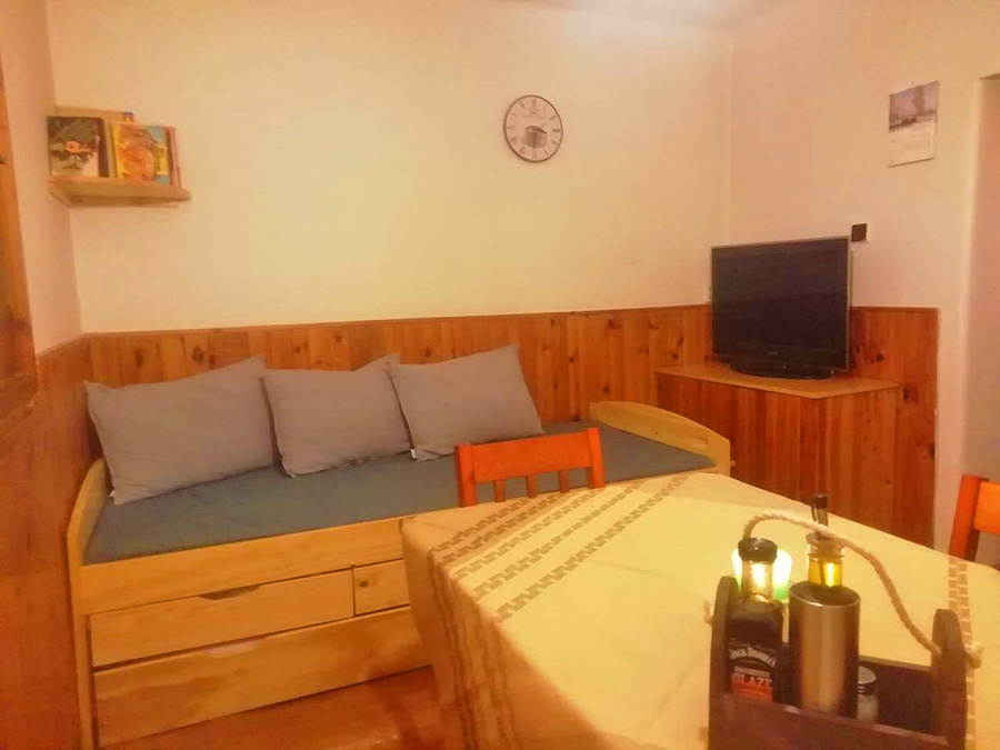V objektu v přízemí: společenská místnost (posezení, krb, 2 samostatné postele), kuchyňsky kout (dřez, mikrovlnná trouba, indukční sporák, varná konvice, lednice s mrazákem, samostatné WC. Sprcha s teplou vodou u domu.