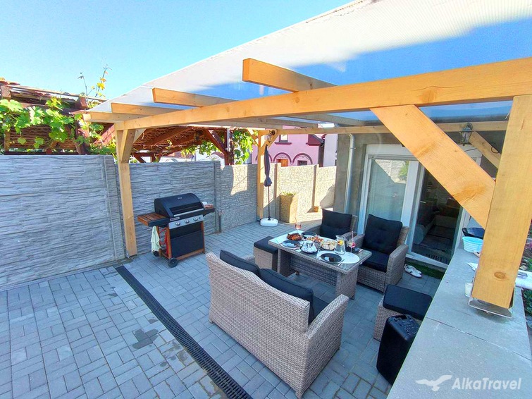 U objektu: vířivka, grill, sudová sauna, zahradní domek, domácí zvíře: na dotaz, 2 parkovací místa, možnost placené degustace vína přímo ve sklípku.