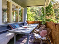 U objektu: oplocená zahrada, veranda s posezením a stolem, ohniště s posezením, gril, parkování.