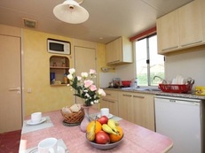 JIŽNÍ MORAVA: rekreační mobilní chata s WiFi internetem na břehu vodní nádrže Výrovice u sportovního i dětského hřiště. Možnost posezení v hospůdce přímo u vody u uzavřené pláže. V objektu v přízemí: společenská místnost (TV, kuchyňský kout - el. vařič, lednice) + jídelna, kuchyňský kout, třílůžková ložnice (2x samostatné lůžko a patrová postel s 1x lůžkem), dvoulůžková ložnice (dvoulůžko), kuchyňský kout (lednice, posezení, plynový vařič, varná konvice, mikrovlnná trouba), koupelna (sprchový kout, umyvadlo, WC). Na objektu není k dispozici povlečení, buď vlastní nebo 140,-Kč/ks. Ubytování je vhodné pro max. 4 dospělé a 1 dítě. Topení: elektrický přímotop.