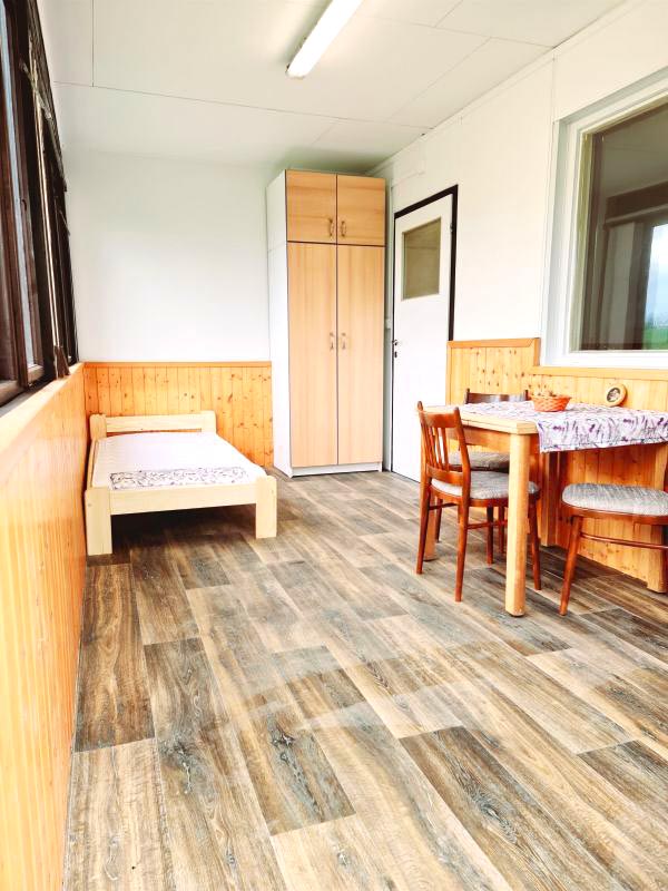 V objektu v přízemí: kuchyňka (lednice + mrazák, el. dvouplotýnkový vařič, mikrovlnná trouba, varná konvice, nádobí), 1/4 ložnice (2x samostatné lůžko, patrová postel), pokoj s přistýlkou a jídelním stolem (4 židle), koupelna (sprchový kout, umyvadlo, WC). Topení: el. přímotopy. Možnost rezervace obou polovin objektu s max. kapacitou 10 osob