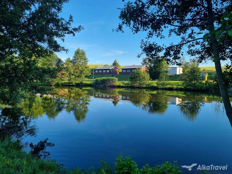 JIŽNÍ MORAVA: rekreační dvoubungalov skládající se ze dvou zcela totožných polovin (obě poloviny vlastní vchod a stejně vybavený) na břehu rybníka (rybaření přímo v areálu) a v blízkosti vinařské oblasti ZNOJEMSKO, s ohništěm, grilem či posezením, 4 km od Vranovské Vsi, 10 km od Švýcarské zátoky Vranovské přehrady a 8 km od Znojma.