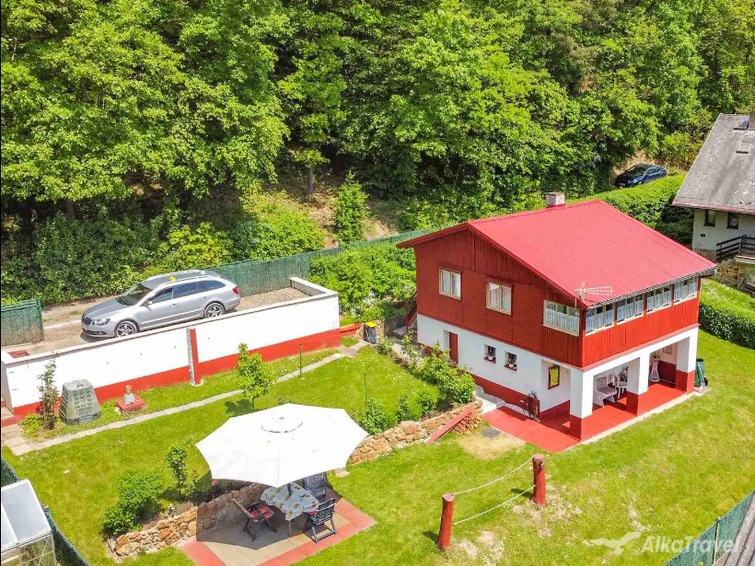 U objektu: oplocená zahrada, kryté posezení s grilem, ohniště, parkování pro 1 auto na pozemku, parkování mimo pozemek cca 2 min chůze, volné prostranství.