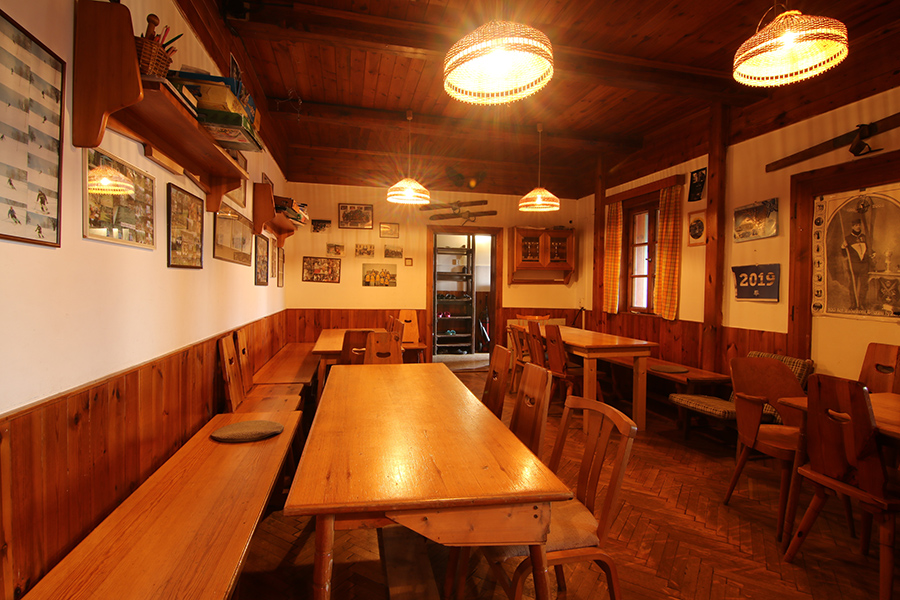 V objektu v přízemí: veranda, vstupní chodba s botníkem, velká společenská místnost (stoly, židle, lavice, LCDTV), prostorná kuchyně (pracovní stůl, kuchyňská linka s nádobím, 2x elektrický sporák, varná deska, mikrovlnná trouba, kávovar, varná konvice), větší sklad potravin (2x lednice s mrazákem, 2x mycí box), dámská koupelna (2x sprcha, 2x umyvadlo, 2x samostatné WC), pánská koupelna (2x sprcha, 2x umyvadlo, 2x samostatné WC), 1/3 ložnice, 1/4 ložnice, 1/4 ložnice. V objektu v patře: 1/2 ložnice, 1/2 ložnice, 1/2 ložnice, 1/6 ložnice, 1/7 ložnice, 1/9 ložnice.