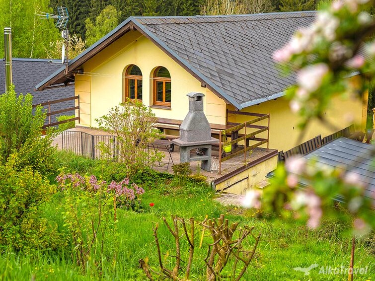 KRKONOŠE: rekreační chalupa s WIFI internetem, VÝČEPNÍM ZAŘÍZENÍM, venkovním i vnitřním KRBEM, grilem, terasou, na okraji turistického střediska, 2 km od lyžařského areálu Studenov, 4 km od Lysé hory a 10 km od Harrachova.