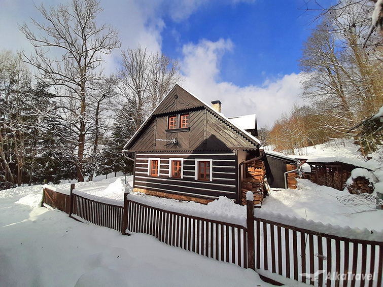 KRKONOŠE: patrová, částečně roubená rekreační chalupa s krytým venkovním posezením, WIFI internetem a 2x kachlovými kamny na úpatí Černé hory, 9 km od Černého dolu, 13 km od Vrchlabí a 12 km od lyžařského areálu Janské Lázně v Krkonoších.