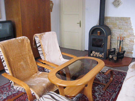 V objektu v přízemí obývací pokoj (BVTV + SAT, video, DVD, hifi, CD přehrávač, sedací souprava), kuchyň (plynový sporák, mikrovlnná trouba, varná konvice, kávovar, myčka, toustovač, lednice s mrazákem 275l/22l), 1/3 ložnice, koupelna (umyvadlo, vana se sprchou, pračka), WC je v koupelně. V objektu v patře: 1/4 a 1/2 ložnice (v kažém pokoji BVTV). Možnost zapůjčení dětské postýlky, židličky a vaničky. Topeni: plynové.