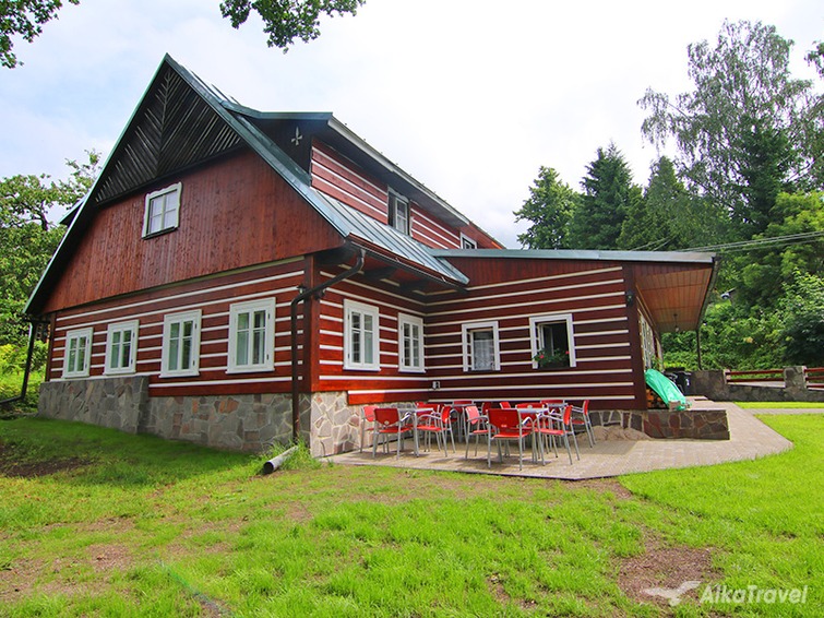 KRKONOŠE: prostorná roubená rekreační chalupa s WiFi internetem a grilem, jen cca 500 m od Ski areálu Černý Důl, 4 km od Ski areálu Černá hora a Stezky v korunách stromů a 19 km od Pece pod Sněžkou v Krkonoších, 5 km od Aquaparku Janské Lázně (vířivky, sauny, vnitřní bazény).