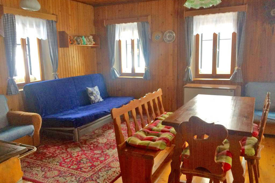 V objektu společenská místnost (posezení, kachlová kamna, BVTV, hifi-věž) s 2 lůžky, kuchyň (mikrovlnná trouba, toustovač, lednice s mrazákem, varná konvice, gril, sporák), 2/2 ložnice, koupelna (umyvadlo, vana se sprchou), WC. Na vyžádání 2x dětská postýlka, dětská židle + stůl, stolní hry a možnost za poplátek půjčení rehabilitačního stolu. Objekt je nekuřácky! Topeni: elektrické nebo tuhá paliva.