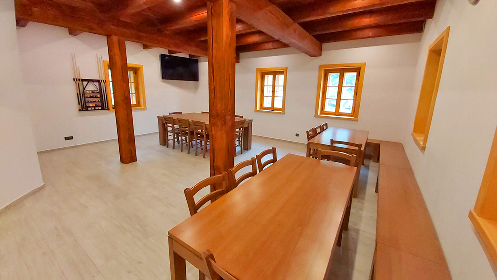 V objektu v přízemí: vstupní chodba s lednicí, wellness místnost (vířivá vana, infra-sauna, odpočinková zóna, sprcha), samostatné WC, světnice (billiard, LCDTV, posezení, gauč, výčep, dětský koutek), kuchyňský kout (trouba, sporák, varná konvice, mikrovlnná trouba, lednice, výčep), 1/4 ložnice (1x dvoulůžko, 1x patrové postele, vybavený kuchyňský kout, mikrovlnná trouba, varná konvice, dvou plotýnkový vařič, lednička, posezení, koupelna se sprchovým koutem, umyvadlem, WC).