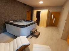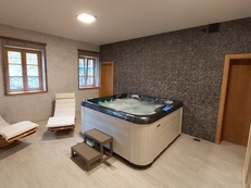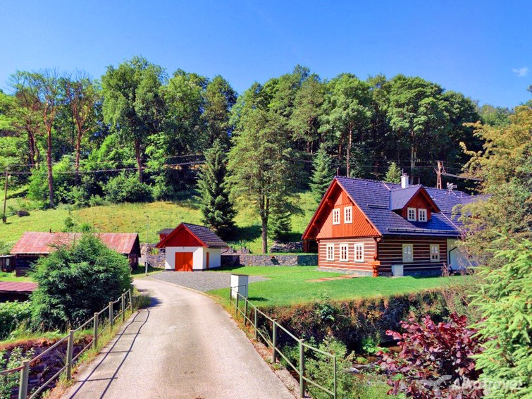 KRKONOŠE: prostorná roubená chalupa s wellness (vířivka a sauna), světnicí (posezení, výčep, billardem) s venkovním krytým posezením a možností uložení kol/lyží ca 1 km od Horního Lánova a 5 km od Vrchlabí.