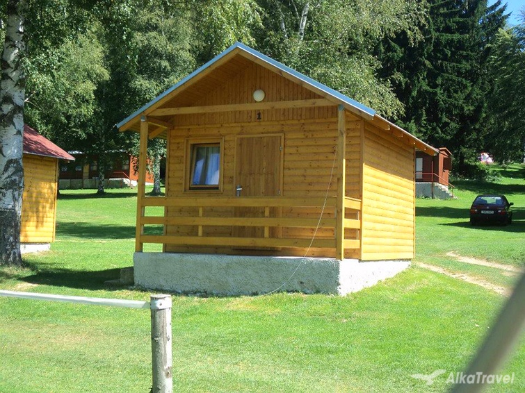 LIPNO: jednoduše zařízená dřevěná chatka v rekreačním areálu na břehu vodní nádrže Lipno (30 m) s možností rybaření, koupání a vodních sportů, 1 km od Hůrky, 18 km od Lipna nad Vltavou.