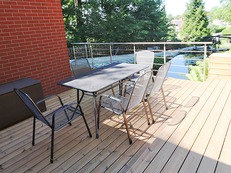 U objektu: oplocená okrasná zahrada s rybníčkem a malým vodopádem, zastřešená terasa/pergola (stůl, židle, venkovní krb - gril), "rozhledna" s výhledem na obec, parkování v uzavřené zahradě.