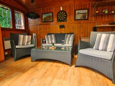 V objektu v přízemí: vstup přes terasu (posezení), obývací místnost (TV, konferenční stůl, rozkládací pohovka pro 1 osobu), 1x ložnice (1x manželská postel a 1x rozkládací gauč, WIFI, rádio, stolní hry, koupelna (sprchový kout, WC), kuchyňský kout (pračka, myčka nádobí, dřez, teplá voda, jídelní stul, trouba, lednice, mikrovlnná trouba, rychlovarná konvice). Topení.