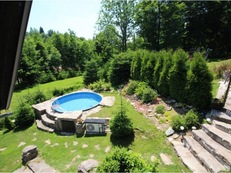 U objektu neoplocená zahrada, tepelným čerpadlem vyhřívaný bazén (průměr 3,5 m, hloubka 1 m), stolní tenis, gril, zahradní posezení, ohniště, pískoviště, houpačka, dětské prolézačky, parkování.