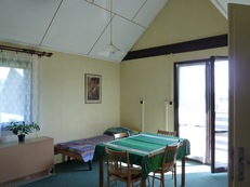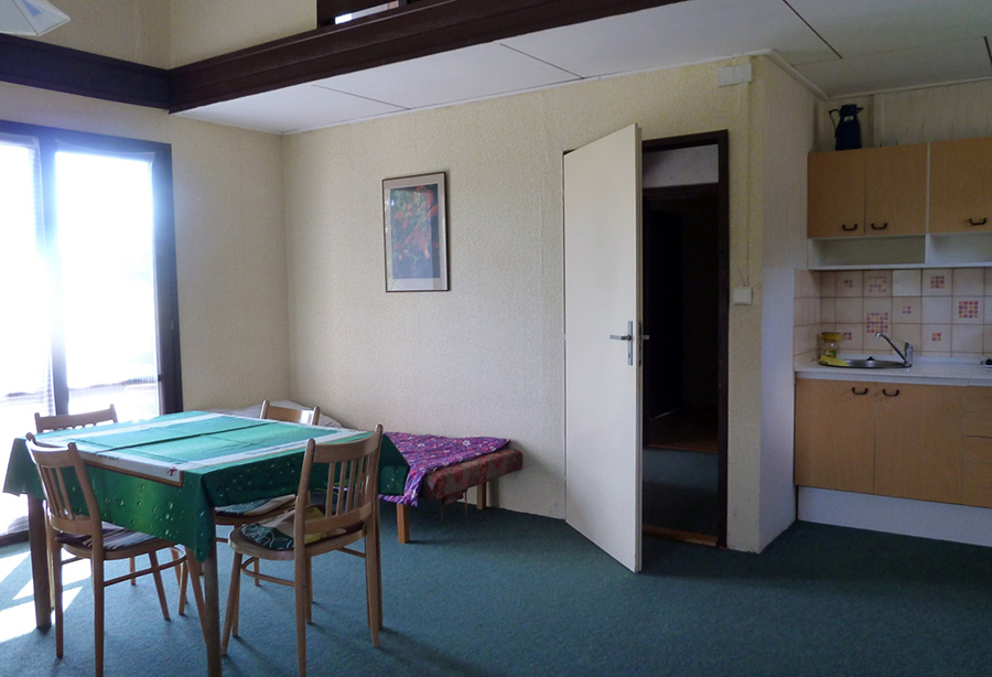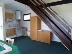V objektu chodbička, 1/2 ložnice, velká obývací ložnice se 2 lůžky s kuchyňským koutem (elektrický vařič, lednice, varná konvice), koupelna, WC.