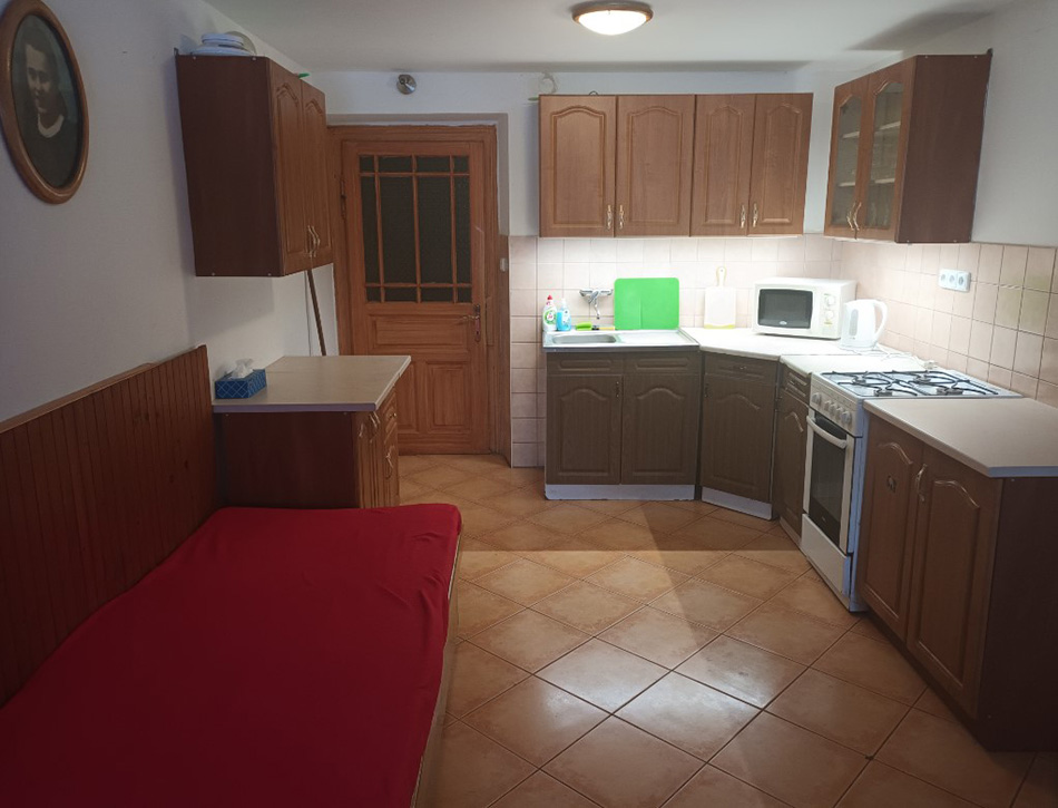 V objektu v patře: 2/4 ložnice (vždy 4x lůžko), 1/5 ložnice (4x lůžko, 1x přistýlka) koupelna I. (sprchový kout, umyvadlo, WC), koupelna II. (vana, umyvadlo, WC). WIFI v celém objektu. Topení: tuhá paliva (uhlí, dříví), elektrické.