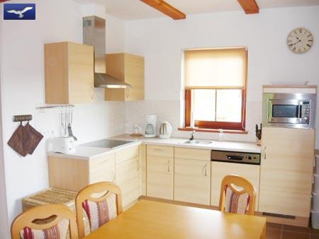 V objektu vstupní chodba, WC, komora pro uskladnění bot, zahradního nábytku, lyžařské výzbroje ap., prostorný obývací pokoj (sedací souprava, BVTV+SAT, jídelní stůl, krb) moderně spojený s kuchyní (lednice, myčka nádobí, trouba, varná konvice, varná deska), velké dveře na venkovní terasu, masívní schodiště do patra, kde jsou 3/2 ložnice, koupelna se sprchou, vanou a umyvadlo, pračka. Pozor - nekuřácký objekt! Topení: krb + infračervená topná stropní tělesa.