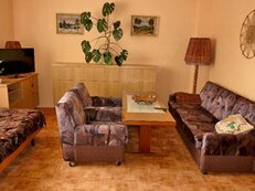 V objektu v přízemí: samostatný vstup do objektu (oddělený od vstupu provozovatele), společenská místnost (rozkládací gauč - přistýlka, jedno pevné lůžko, televize, rádio,úložný prostor) kuchyně (2x lednice, mikrovlnná trouba, plynový sporák, elektrický vařič, topinkovač, rychlovarná konvice), 1/4 ložnice (dvoulůžko, samostatné lůžko,přístýlka, televize, úložný prostor), koupelna (sprchový kout, umyvadlo), samostatné WC. Topení: topí majitel.