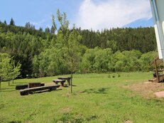 U objektu: neoplocená zahrada, zapuštěný bazén, lehátka, venkovní sprcha, ohniště s posezením, parkování.