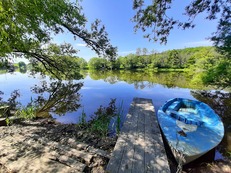 POSÁZAVÍ: jednodušší rekreační chata na břehu řeky (Sázava, rybaření) s možností zapůjčení LOĎKY či PADDLEBOARDU, s WIFI, v oplocené zahradě, 2 km od Týnce nad Sázavou a 45 km od Prahy.