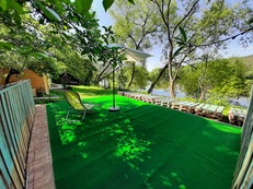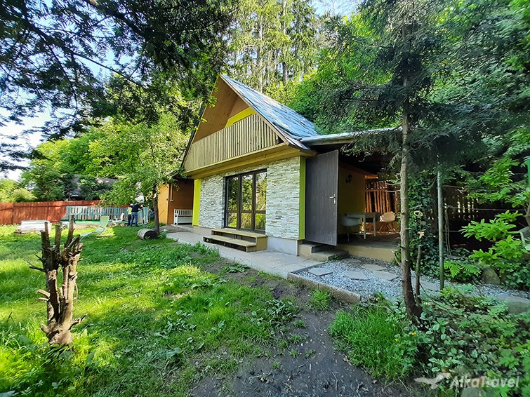 U objektu: venkovní zastřešená kuchyně (el. vařič, mikrovlnná trouba, rychlovarná konvice, kávovar, nádobí, stůl, židle) propojená s koupelnou (sprchový kout, umyvadlo, WC), v zimě (prosinec až březen je nutné brát vodu ze studny - venku), oplocená zahrada, ohniště s posezením, lehátka, slunečník, parkování nad objektem (150 m od objektu). K zapůjčení loďka (za 500 Kč/týden) a 1x paddleboard (za 300 Kč/týden). Cena dle domluvy při kratším než týdenním pobytu.