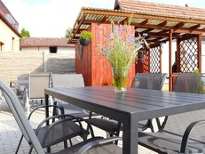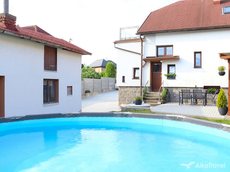 U objektu: oplocená zahrada, nadzemní bazén (červenec a srpen), kryté posezení, krb, gril, zahradní nábytek, pískoviště, ohniště, parkování, dětská skluzavka, garáž (uložení kol a lyží).