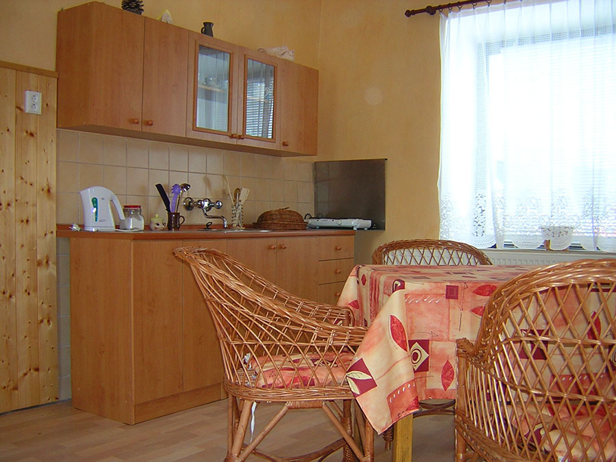 V objektu v přízemí: kuchyně (el. vařič, lednice, varná konvice, mikrovlnná trouba), společenská místnost s BVTV (po dohodě možnost přistýlky), koupelna (sprchový kout, umyvadlo, WC).