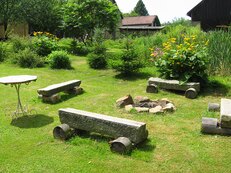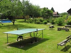 U objektu oplocená zahrada s posezením, gril, houpačka, pískoviště, stolní tenis, bazén (průměr 3,5 m) parkování, možnost uložení kol v uzamykatelné místnosti. Pronajímána je polovina domu. Ve druhé může bez narušení soukromí hostů pobývat nepravidelně správce.
