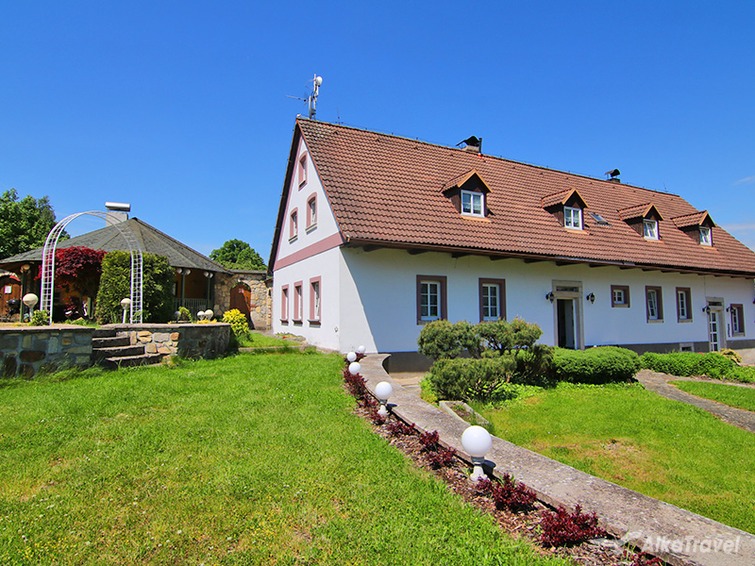 RATIBOŘICKO: luxusní apartmánový dům se 3 apartmány, VNITŘNÍM a VYHŘÍVANÝM BAZÉNEM, velkou PERGOLOU, DĚTSKÝM KOUTKEM v uzavřené zahradě s mnoha terasami, několika posezeními, venkovními grily, stolním tenisem a trampolínou, jako samostatný objekt rozlehlé hospodářské usedlosti, jen 6 km od Ratibořic, lokalita obcí Hořičky, Litoboř, Chvalkovice u České Skalice.