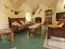 V objektu v přízemí: kuchyň (el. sporák - 4 plotýnky, lednice + mrazák, trouba, kávovar, mikrovlnná trouba, myčka nádobí, pračka), velká společenská místnost (krb, BVTV + SAT, kožená sedací souprava, gauč, kožená křesla, rádio, hifi věž, jídelní kout - stůl, židle).